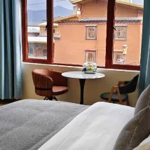 위치는 고대 도시 북문 바로 밖이라 편리합니다. 밤에는 조용해서 숙면을 취할 수 있습니다. 객실은 엄청나게 넓고 필요한 모든 것이 갖춰져 있습니다. 추운 날씨를 대비해 난방이 되는 욕실과 바닥 난방, 더울 때는 환기를 위한 창문, 고산병에 대비한 산소, 그리고 건조한 피부를 위한 가습기가 있습니다. 손 소독제가 있으면 더 좋을 것 같습니다. 매일 커다란 창문을 통해 푸른 하늘과 하얀 구름을 바라보며 눈을 뜨면 떠나고 싶지 않을 정도입니다.