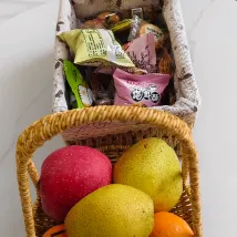 〈하이 선물〉 간식 : 방에 사과 3개가 있는데 아주 맛있고 끈적끈적해요. 그리고 작은 간식과 비스킷도 있어요.
