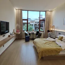 방은 넓었고, 테이블 위에는 간식과 과일이 많이 놓여 있었습니다. 호텔에는 산소 장치와 가습기가 제공되며, 바닥 난방도 제공됩니다. 욕실에는 일회용 목욕 타월과 변기 시트가 제공됩니다. 침대는 편안했고, 방은 전반적으로 깨끗했습니다. 호텔은 두커종 고대 도시의 북문과 매우 가까워 고대 도시로의 출입이 매우 편리합니다. 호텔 주인도 매우 열정적이고 친절하며, 무료 픽업/드롭오프 서비스를 제공합니다. 매우 만족스러운 숙박 경험이었습니다.