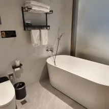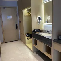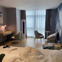 房間設施齊全,房間沒有異味,雖然沒有早餐,但是周邊都是有本地的很多吃的地方,樓下就是萬象城,對面是蘇寧,逛街吃東西都很方便,唯一不好的就是下班高峯期萬象城附近開車堵車非常擁堵,停車場入口也非常不好找,如果不是開車來的還是十分推薦這家酒店的。