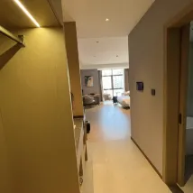 位置佳,就在万象城旁边,四周很熱鬧,但酒店名牌不显眼,很易错过,酒店是公寓型式,没有独立前台,只有一个小小登记処在大廈前台旁边,6月17日2时多登记入住,前台小哥态度没话可说😞不主动讲解,问一个才答一个,很不耐烦似的。房间很大,输入密码开门,还有浴缸,但没有冰箱,床铺舒适,卫生乾净,就是淋浴间地台有滲水情况。