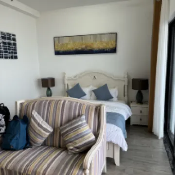 호텔은 바다와 가깝습니다. 위치는 매우 좋지만 위생은 보통입니다. 시설면에서 침대 옆 탁자 스탠드 근처의 콘센트가 인접한 침대 판자 뒤에 있어 사용할 수 없습니다. 기타 시설은 매우 좋습니다.