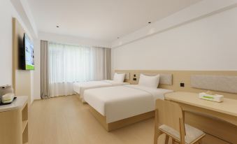 房間特別乾淨整潔👍年內新開業的就是好,感覺入住體驗完全不輸亞朵全季~全部都是一次性用品,房間乾淨明亮,隔音也很好,還有送餐機器人