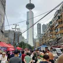 야시장 구경하기 좋은곳. 인근 공원과 빌딩숲 산책하기도 좋음. 공원 산책하면 박수부대를 만날 수 있음