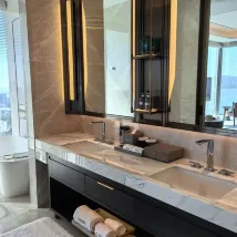 시설: 매우 좋음. 세면대가 두 개 있는데, 서로 방해가 되지 않음.