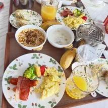 중국식과 서양식 아침 식사는 매우 풍부하여 3명이 먹기에 충분합니다.