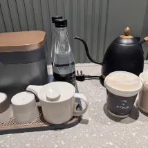 냉장고에는 특별 제작 Atour Village 차가 있었는데 정말 맛있었습니다. 무가당 차는 아주 좋았고, 꿀맛 차도 너무 달지 않았습니다. 차와 커피도 따로 준비되어 있었습니다.