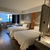 프론트 데스크 직원은 매우 세심하고 정중합니다. 객실에서는 핸드크림, 화장수, 알약 등을 프런트에 요청하면 로봇이 제 시간에 배달해 줍니다. 방도 매우 넓고 깔끔합니다. 더블베드룸도 2명이서 지내기에 충분합니다. 아침 식사의 종류는 많지 않지만 모두 적합하고 간단한 간식이 있습니다. 호텔 위치도 매우 편리합니다. 룽청광장 지하철역에서 도보로 3~4분 거리에 있으며 근처에 대형 쇼핑몰과 서점도 많이 있습니다☺️
