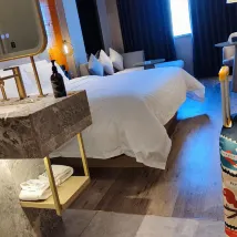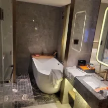 호텔은 지하철역과 대형 쇼핑몰에서 가까워 최적의 위치에 있습니다. 객실도 넓고, 고객 서비스도 신속하게 대응하며, 로봇이 물품 배달을 도와주는 것도 참 신기합니다. 다만, 화장실 샤워기 수압이 좀 더 세면 더 좋을 것 같습니다.