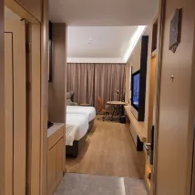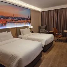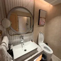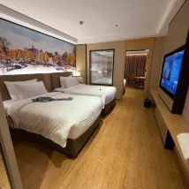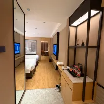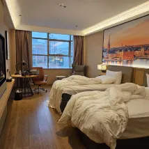 서비스는 꽤 좋았습니다. 방에서 담배 냄새가 약간 났지만 프런트에 전화했더니 바로 바꿔주었습니다. 로봇이 가져다줄 때까지 방에서 기다리지 말라고 하기도 했습니다. 방을 바꾼 후에도 담배 냄새가 남아 있는지 확인하려고 전화했습니다. 트윈룸은 꽤 넓었고, 침구는 너무 푹신하지 않고 매우 편안했으며, 가구와 분위기도 고급스러웠습니다. 유일한 단점은 냉장고가 없어서 구매한 음료와 음식을 보관하기 불편했다는 것입니다. 또한 2~3가지 종류의 과일, 케이크, 빵, 건과일과 견과류, 2~3가지 종류의 따뜻한 음료와 차가운 음료, 작은 쿠키가 포함된 애프터눈 티 뷔페를 제공했는데 매우 세심했습니다. 무료로 사용할 수 있는 헬스장과 세탁실이 있는데, 관리가 잘 되어 있다는 것을 알 수 있습니다. 톈베이 역 D 출구에서 도보로 6~7분 거리에 있어 꽤 가깝습니다. 선전 중학교가 길 건너편에 있는데, 다행히 여름방학 동안 시끄럽지 않았어요. 근처에 맛집도 많아요. 복도에서 담배 냄새가 좀 심했던 것 빼면, 같은 등급은 물론이고 4성급이나 5성급 호텔에서도 이 정도 퀄리티의 호텔을 찾기가 쉽지 않아요. 추천합니다.