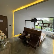 The room is spacious. It has a nice view. It's close to the Dapeng Fortress and bus stops. The cleaning lady and owner are nice. There's no smoke smell.
