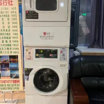 4층에 있는 세탁기와 건조기는 크고 효율적으로 옷을 세탁할 수 있었습니다. 가격은 매우 합리적이고 세탁 세제가 제공됩니다.