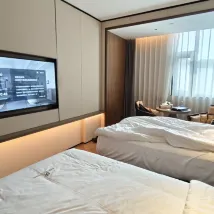 전시회에 참가하러 왔을 때 더블룸은 예약하지 못하고 트윈베드만 있었는데 프론트에서 친절하게 스위트룸으로 업그레이드해주셨고, 하루의 피로를 풀어주는 안마의자도 있어서 너무 좋았습니다. 잠이 너무 편안했어요.