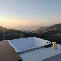 야외욕조가 없어서 아쉬웠습니다. 다른 서비스는 괜찮았으나, 숙소가 너무 멀고, 차를 타고 픽업해줬으면 더 편했을 것 같아요. 저 바다 풍경은 상상했던 것보다 훨씬 더 멀다.