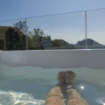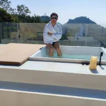 비가 조금 왔기 때문에 수영장에 몸을 담그기 위해 발코니로 가지 않았습니다.
