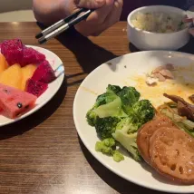 호텔 바로 옆에 쇼핑몰이 있었어요. 늦게 도착해서 옆 쇼핑몰의 샤오차이위안에서 저녁 식사를 했습니다. 호텔 프런트 직원분들이 정말 친절하셨고, 조식으로 나온 시리얼이 아주 맛있었어요. 저녁에는 셀프로 가져다 먹을 수 있는 녹두죽도 있었는데, 더위를 식히기에 딱 좋았어요.