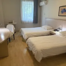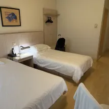 호텔 로비를 제외하고는 객실이나 복도가 전반적으로 오래된 느낌이 나지만, 이 정도 크기의 침대가 있는 방은 충분히 넓고 침구도 깨끗합니다. 하지만 조명이 너무 어둡고 광원이 심각하게 부족합니다. 욕실도 어둡고 낡아서 혼자 살기에는 좀 무섭네요. 문 앞 길 양쪽에 나무가 너무 아름다워요. 그렇지 않으면 여기서 살 수 있어요. 추천하지 않습니다.
