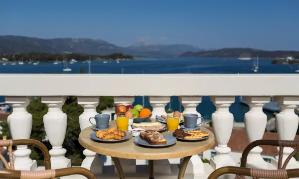 We stayed in a double superior room, 2 double doors onto the balcony. Waking up to views of the harbour was amazing! The room was cleaned thoroughly daily. A modern extremely comfortable apartment. The only negatives for the room were the hairdryer wasn't up to much and the ill fitting bathroom door. Breakfast on the rooftop was plentiful, fresh baked cakes and pastries daily with a hot option. It was varied with minimal repetition and a wide choice. All in all, would recommend this hotel to other travellers to Poros for a laid back holiday.