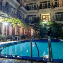 호텔은 오래되었지만 아늑합니다. 직원들은 매우 친절하고 따뜻하게 맞아줍니다. 아침 식사는 간소합니다. 물론 배고프게 떠날 수는 없지만, 직접 조립하는 식탁보는 기대하지 마세요. 호텔 분위기는 좋습니다. 하루 종일 명소를 돌아다닌 후 밤에만 호텔에 묵는 것을 고려하면 괜찮습니다! 중심가까지 툭툭이는 2달러인데, 이 가격에 주목하세요. 근처에 큰 슈퍼마켓이 있어서 필요한 모든 것을 살 수 있습니다. 저녁에는 수영장에서 몇 시간 동안 휴식을 취할 수 있습니다. 깊지는 않지만 수영은 가능합니다.
