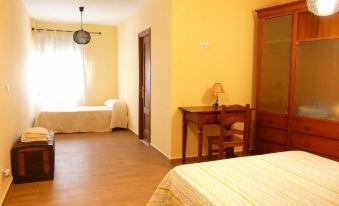 The Ecosostenible building: it is supplied with solar energy conditioned by seasonality and firewood from clearings whose objective is the prevention of fires and forest conservation. The property is distributed on two floors in the lower one there is a meeting room and a cafeteira asador. 1200 m garden with cherry trees, plum trees, orange trees, olive trees, fig trees and Our main tree two centenary walnut trees that give name to the street and to the lodgings