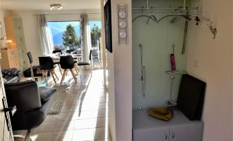 Casa perfectamente equipada, muy limpia, y con vistas maravillosas. Situada en una zona muy tranquila y muy cerca de todos los servicios en Crans Montana. A destacar que es la mitad de una casa, la otra mitad es para uso de los dueños pero no estaban.