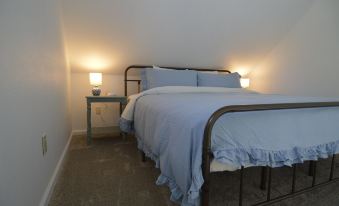 Inside, relax in the downstairs open concept living room, gather around the cozy wood stove, or unwind on the front or back porch surrounded by mountain views. The home features four king beds—three private bedrooms each with a king, and a fourth oversized room with both a king and a full bed. Need even more space? A second living area upstairs includes a daybed that can be used as two twins or raise the trundle up to make a king.