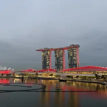 마리나베이샌드에서 차로 10-15분정도에요. 근처에 먹을 곳 많고, 지하에 슈퍼도 있고 같은 건물에 한식당도 있어요.