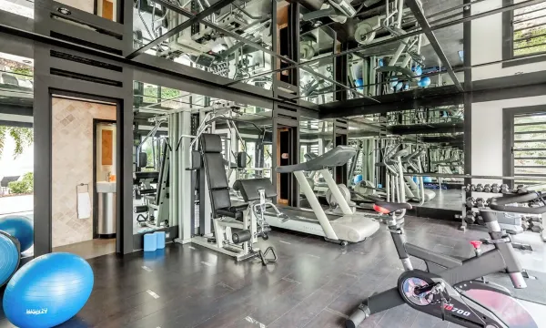The villa also has a fully air-conditioned, freestanding gym, one of the few properties on island with this feature. In addition to a separate full bathroom, the gym comes fully equipped with a treadmill, elliptical, spinning bike, free weights, ballet barre, yoga mats, and more. Sliding glass doors across the gym open completely, allowing you to get in your morning workout with views of the ocean.