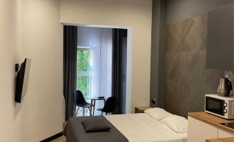 Отличный отель. Удобное местоположение в центре города. Все рядом, пляж, вокзал, парк. Чисто, уютно и тихо. Шикарный матрац, были во многих гостиницах в разных странах, но такой мягкий матрац впервые встретили. На кухне есть посуда, плита, холодильник и микроволновка.