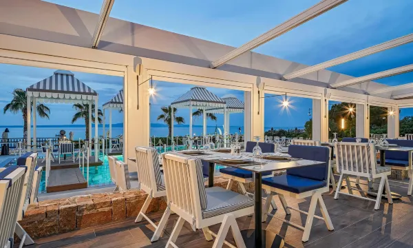 이 호텔에는 4 개의 레스토랑이 있으며 이중 하나인 Aegeas Restaurant에서 식사를 간단히 해결하실 수 있어요. 또는 편하게 객실에서 룸서비스(이용 시간 제한)를 이용하실 수 있습니다. 시원한 음료가 생각날 때 이용하면 좋을 비치 바, 5 개의 바/라운지 또는 3 개의 풀사이드 바도 있어요. 아침 식사(뷔페)가 매일 07:30 ~ 10:30에 무료로 제공됩니다.