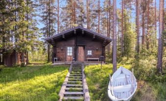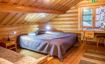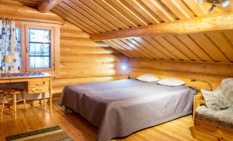 This log cottage by the small Lake Ylä-Valkeinen in Välikoski area in Sotkamo was completed in 1993. Floor area 120 m². Combined living room & kitchen, with sofa bed for 1-2 person, loft with two bedrooms, both with 2 beds + sofa bed for 1-2 persons. Sauna (electric heating), washroom, dressing rom, toilet. Porch.