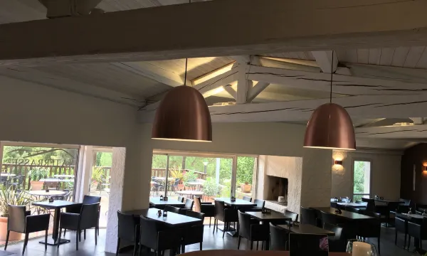 A very nice auberge, with separate buildings with the bedrooms with terrace, a large swimming pool, a restaurant with terrace and a Spa. Summarized, a cosy hotel with great facilities and surroundings. The restaurant is good and the staff very friendly. We booked a small room, which was indeed small but sufficient. We enjoyed dinner and breakfast. The hotel is located in a quiet neighbourhood nearby a small village.