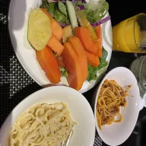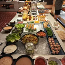• 저녁 식사는 신선하고 보기 좋게 차려진 아시아 및 서양식 메뉴를 균형 있게 제공했습니다.