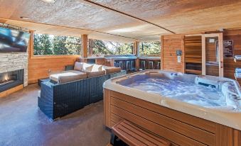 Roof top deck with large hot tub, sectional sofa, indoor sauna.. Soak in the outdoor hot tub while watching the skiers come down the slopes or watch TV on the Flat Screen set above a rock fireplace...About pets:No pets allowed.About checkOut:Check out before 11:00 AM.About children:Children allowed: ages 0-17.About checkIn:Check in after 4:00 PM.About smoking:Smoking is not permitted.About minBookingAge:Minimum age to rent: 25.About events:No events allowed.