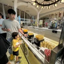 먼저 마들렌을 칭찬해야겠어요. 그녀가 모든 고객의 요구에 부응하기 위해 항상 웃는 얼굴로 일하는 모습을 보니, 저는 하루 종일 기분이 좋았습니다. 아이가 계란 알레르기가 있어서, 계란이 들어가지 않은 음식이 무엇인지 알아내고, 계란이 들어가지 않은 다양한 음식을 아이에게 가져다 주셨어요. 정말 감동했어요.