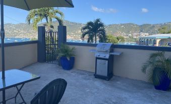 Guests have the whole apartment unit to themselves and it is completely private. Keyless entry is provided, where guests receive a code on the check-in day to have access to their unit. There is a porch, where one can feel free to have morning coffees and enjoy the view, or watch the sunset during the evening. This apartment has a full kitchen to use. The neighborhood is safe and has an engaging night life close by. It is a 15 minute drive from the airport and a 3 minute drive from Havensight Shopping Mall.