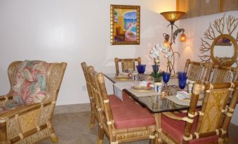 For those of you who may want to dine in and enjoy the spectacular views and privacy of your own villa, the condominium is equipped with a full kitchen with the appliances and cookware that you have at home (refrigerator, stove/oven, microwave, dishwasher, coffee maker, blender, etc). A dining area adjoins the living room with a large dining table and 6 chairs, in addition to patio/balcony seating for exterior oceanfront dining. You can also enjoy the two restaurants or do take-home dinners at your convenience.