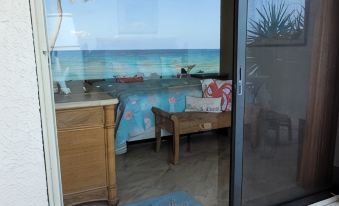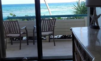 You’ll find this two bedroom/two bathroom (2BR/2BA) condo with sofa pullout option to be an ideal accommodation for couples or families vacationing together. It’s the only one that has been completely remodeled. Condominium accommodates 4 persons perfectly (and up to 6 persons total) within a spacious 1100 sq feet, well-designed layout with two air-conditioned bedrooms set apart from each other to promote privacy, two bathrooms, and an air-conditioned kitchen/living area with a pull-out sofa option (small fee for the extra person(s)). The furnished 30’ ocean-facing patio is accessed directly via glass sliding doors that showcase breathtaking oceanfront views into the condo’s living/kitchen/dining room and from the master bedroom suite.