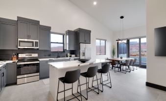 Located 10 minutes south of downtown Moab, our luxury unit @ Vizcaya is equipped with a fully stocked kitchen, two spacious bedroom areas, two luxury bathrooms, private patio with a hot tub and outdoor dining space with a propane BBQ grill. Enjoy amazing unobstructed views of the Moab Rim and breathtaking sunrises & sunsets. The property has ample parking for multiple vehicles, trailers, SXS's, jeeps & other adventure vehicles. Enjoy the convenient laundromat on property to clean up and prep for your next adventure.
