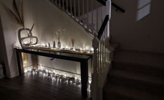 The main floor features an open-concept living, dining, and kitchen area with ample space to entertain guests. The kitchen is fully equipped, has an Espresso Machine and a breakfast bar. There's also a cozy living room and a large TV.