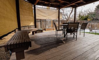 This wonderful home has just been fully remodeled and guests will be able to feel the relaxing and inviting energy from the moment they walk through the front door. With about 1200 square feet, it holds a living room, dining room, kitchen, 1 bedroom with a queen bed and 1 bedroom with a king bed. There are two full bathrooms and each room has its own private access to each bathroom. It also has 2 dedicated work spaces for our guests who work from home. Guests can relax under the gazebo in the private backyard surrounded by hanging lights.