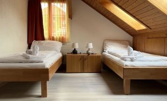 Bed, toilet and kitchen linen 25.- CHF/person, final cleaning 150.- CHF. At check-in, a deposit of CHF 200 is paid in cash. On the day of arrival, you will receive a payment link to provide your credit card details for the deposit. Alternatively, you cash leave a cash deposit of CHF/Euro 300.00.