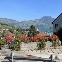 방은 넓고 깨끗합니다. 발코니에서 툰 호수가 보입니다. 가격 대비 성능이 매우 좋습니다. 여기 장식 스타일이 마음에 듭니다. 기차역과 15분 거리, 편리한 교통