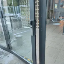 손님은 문이 잠기지 않도록 문에 돌을 놓았습니다.