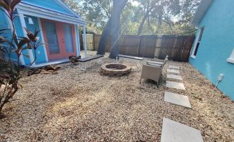 Relax out back in your own paradise which features a large covered lanai, outdoor bar/kitchenette, Screened in pool (complimentary HEAT) and lights for great nighttime swimming. Fenced-in yard w/fire pit and benches for family bonfires and roasting marshmallows with the kids! Even an orange tree to pick oranges and squeeze your own orange juice. (Kitchen is equipt with an orange juice press) Plenty to do at this home after spending your days out and about.