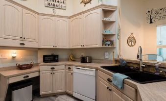 We have plenty of towels, pantry items, spices, pool toys, kids safety vests, (complimentary papertowels, toilet paper, shampoo, body wash, first aid supplies, garbage bags, clothes detergent, dish and dishwasher detergent to get you started), coloring books, building blocks, board games, beach chairs, beach blanket, cooler, thermos, popcorn maker, juicer, cold stone for ice cream, pizza stone, crock pot, air fryer, blender and more all for tenants use.