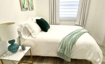 Relax and unwind at this centrally located 2-bedroom home (1 king bed and 1 double bed). Recently renovated, modern decor and exceptionally clean. Close to downtown and major amenities such as grocery stores, hospitals, and shopping malls. Nearby parks, walking trails, coffee shops, indoor swimming pool, and bowling alleys. Located on bus route. Includes air conditioning to cool off on hot summer days. Travel guide/map provided to plan activities.
