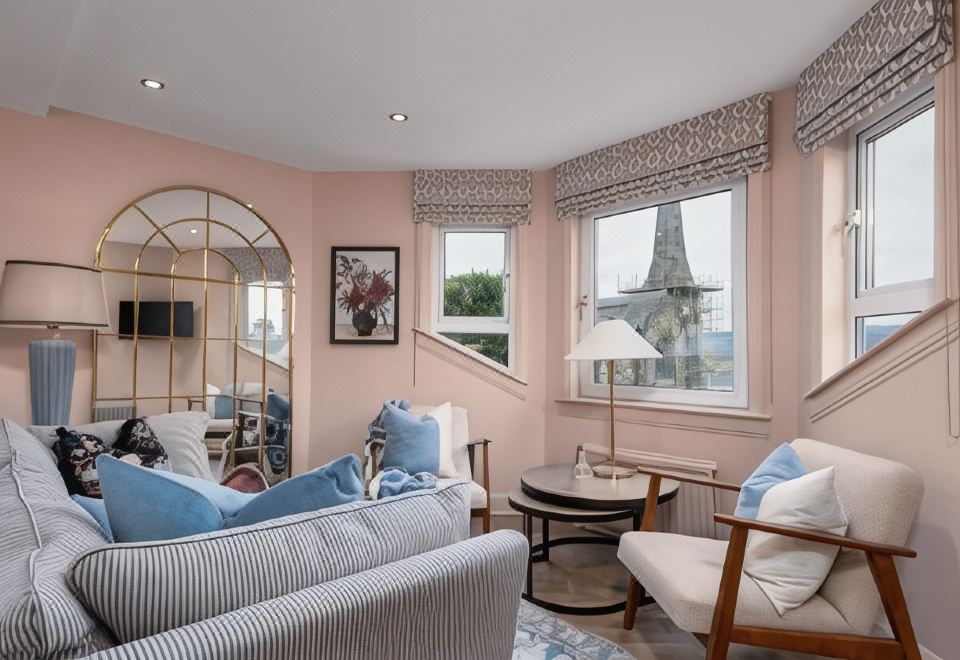 We stayed in the Macdui Master Suite for 3 nights in October and it was wonderful! The suite is on the entry level floor so no need to take bags upstairs. Suite was spacious and wonderful as we recovered from jet lag. Also great to have when an incoming storm (Amy) cut our Trossachs exploration short and we returned to the flat for a relaxing, rainy afternoon. The "king" bed was smaller than expected - not a true king, more like a queen. Appreciated the bedroom storage, Netflix, coffee supplies, and other thoughtful touches. The decor and color scheme throughout was lovely and made the place feel homey! Note that this accommodation does NOT include breakfast. This is a self-catering accommodation. Previous reviews mention breakfast but this is no longer offered. There are plenty of dining options in town, though. We had a car and parking away from the flat was a little inconvenient but not too burdensome. Was nice to park for free on Sunday in front of the flat. We used the shower and bathtub. Both were excellent. One bit of feedback for the bathtub - a shelf or small table would be appreciated to put a book, towel, phone, bath products, or other things on. The tub is so deep that you can't easily reach down to the floor. Communication with hosts was great. They were able to accommodate us earlier than 3pm which we were so thankful for after a long overseas flight. The online welcome guide and instructional videos are extremely detailed and helpful when needed. There is a very cute whisky bar (Curly Coo) just around the corner - don't miss it! We were very comfortable here and would absolutely stay again if our travels bring us back to bonnie Stirling!
