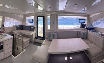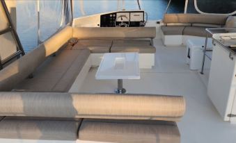 Large sliding glass doors opens the galley to a large cockpit where there iss ample seating to entertain all your guests.