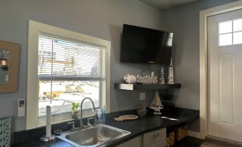 Perched on the shimmering waters, this 1 bedroom, 1 bath houseboat epitomizes cozy waterfront living. Step inside and you'll find yourself welcomed into an inviting living space with sofa bed. The living area transitions into a kitchen complete with essential appliances. Down the hall from the living area lies the bedroom with a Queen bed offering a peaceful haven for rest and relaxation after a day spent exploring. An elegantly appointed bathroom awaits, featuring modern fixtures and amenities (Shower Only).